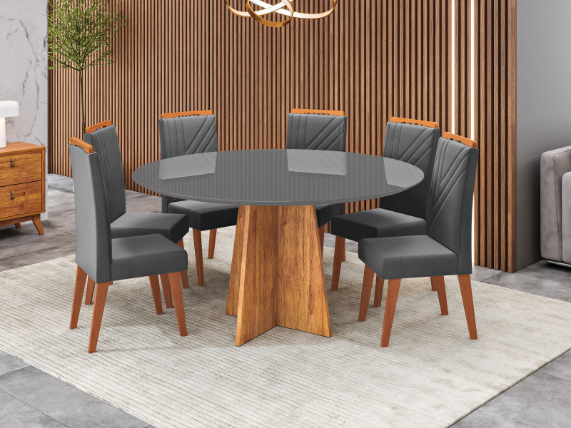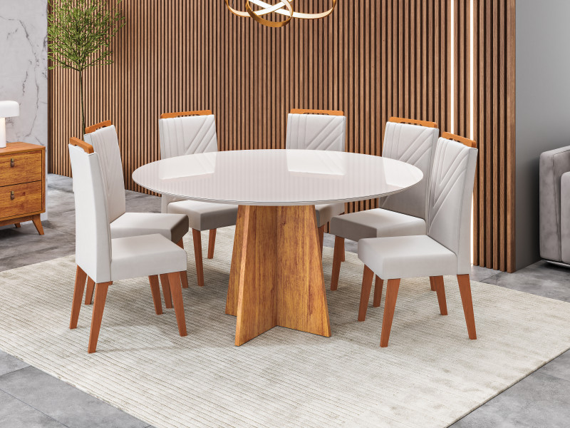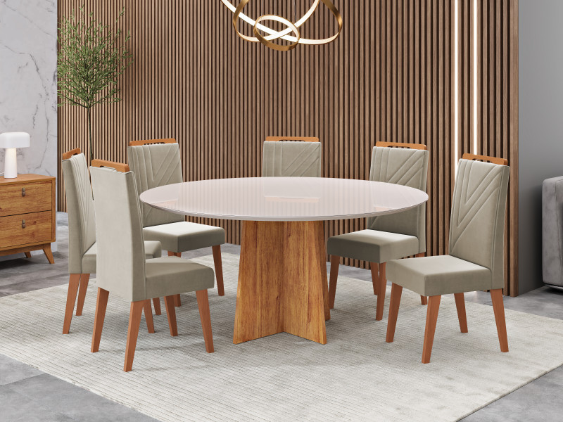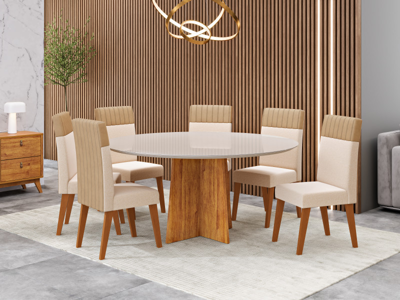 Viero Móveis Nicole Redonda 1350_Mel_Vd Off_6 Cad Monaco_Linho Bronze_Corano Areia